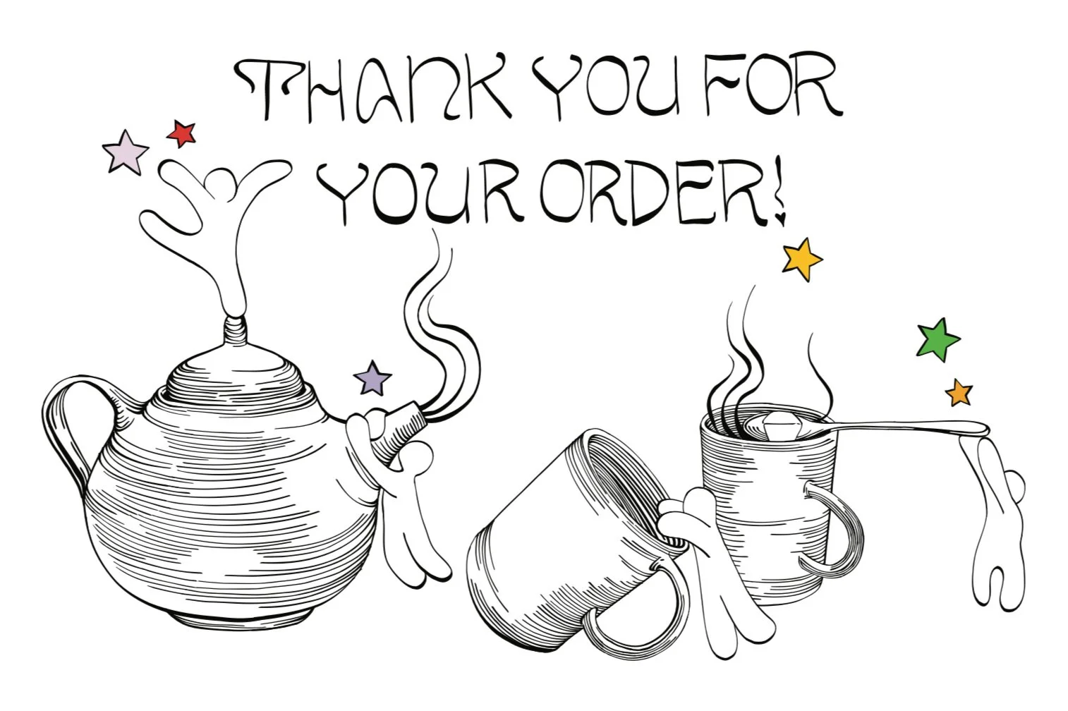 Thank-you postcard design and artwork for Los Angeles based ceramicist Lulupots